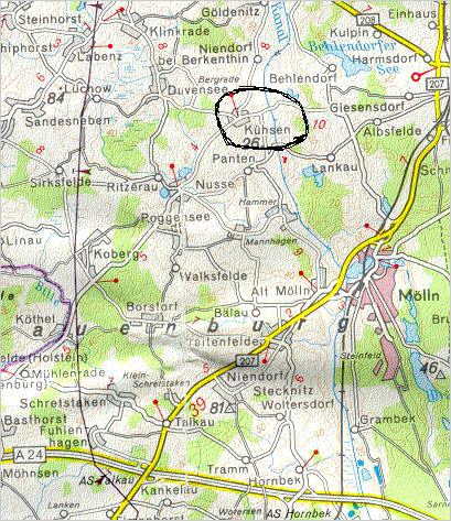 Am 14. Mai 2002 habe ich den Vertrag für den neuen Betrieb in Kühsen unterschrieben. Die Betriebsübergabe erfolgte im Sommer/Herbst 2003. Der Ort liegt in der Nähe von Mölln, von Siek aus beträgt die Fahrstrecke mit dem Auto 26 km.