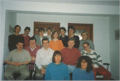 Hatte ich 1992 vollen Rückenwind, so flaute 1993 der Rückenwind merklich ab. Eigentlich war ich ja froh, nun endlich Seminare besuchen zu können, da der Vergleich zu Mitschülern irgendwie fehlte. Im März fand das Unterstufenseminar statt, da war ich im 4. Vierteljahr, und im Oktober das Mittelstufenseminar, da war ich im 5. Quartal. Interessant war der Vergleich schon, da jeder unterschiedliche Voraussetzungen hatte und jeder unterschiedliche Ziele verfolgte. Jeder Teilnehmer war aber sehr motiviert, eine solche positive Stimmung habe ich in einer Gemeinschaft selten erlebt. Die Seminare waren schön anstrengend, es musste sehr viel Stoff in kurzer Zeit durchgenommen werden. Aber es hat auch viel gebracht, ich hatte neue Lernmethoden kennen gelernt, und ich konnte nun besser an meinen Schwächen arbeiten. Das folgende Foto zeigt einige Teilnehmer vom Seminar im März 1993: