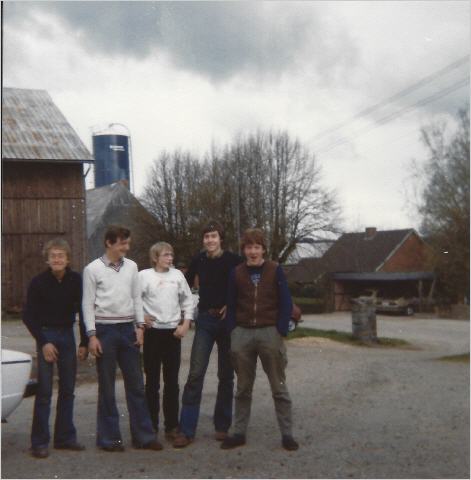 Ich war nicht der einzige Lehrling, außer mir waren noch Detlev Böhmker und Heiko Steen da. Detlev kannte ich schon aus dem ersten Berufsschuljahr her, er ging mit mir in dieselbe Klasse. Heiko war der Jüngste von uns, er kam aus dem Nachbarort Rümpel und ersetzte einen Lehrling der kurz vorher abgesprungen war. Auf dem nächsten Bild sind zu sehen: (von links nach rechts) Christian Evers (“Evi”), ich, Carsten Walkling (Sohn von Walkling und jetziger Betriebsinhaber), Detlev und Heiko. Das Bild ist irgendwann während meiner Lehrzeit bei Walkling aufgenommen worden.